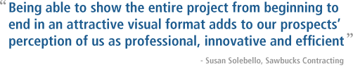 “Being able to show the entire project from beginning to end in an attractive visual format adds to our prospects’ perception of us as professional, innovative and efficient,” noted Solebello. “People really like that bigger picture.”