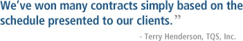 In fact, Henderson credits FastTrack Schedule for helping the company win an $80,000 job last August. TQS personalizes the project schedule for each client with pictures and graphics, creating a highly effective presentation. Once on the job, Henderson uses the schedules to keep subcontractors on time and within budget.