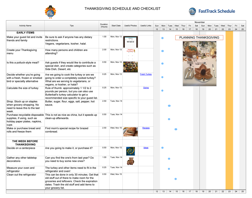 Download FastTrack Schedule TemplateThanksgiving Schedule and Checklist |