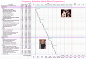 This schedule provides a checklist of essential activities to follow and estimated durations in this nine month schedule. The main phases are divided by trimesters and the budgeted and actual costs of the pregnancy can be tracked.
