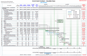This schedule tracks a project that requires the ability to calculate Earned Value analysis. The schedule includes several calculation columns that track the essential data for earned value analysis: AC, EV, PV, SV, CV, BAC, EAC, ETC, SPI, CPI, VAC and more. Use the various column Layouts to display the calculation columns and summary graphs. This schedule tracks use one of the baseline groups (10) to use as a comparison against earned.