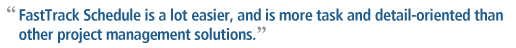 “I immediately realized FastTrack Schedule is a lot easier, and is more task and detail-oriented than other project management solutions I explored,” said Dale. “And FastTrack Schedule is extremely cost-effective. I was excited about what we saw, so we bought several licenses, got it up and running in a couple of days and since then have left all of our previous project management frustrations behind.”