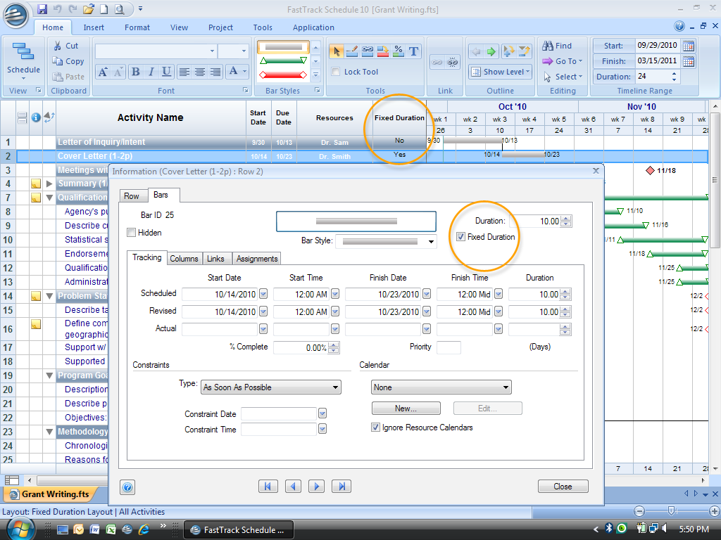 apply fixed duration. FastTrack Schedule will constrain the duration regardless