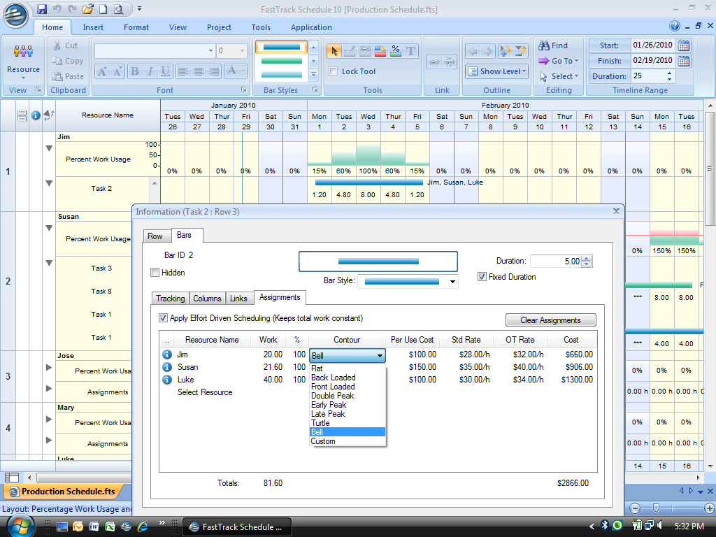 making assignments in the Schedule View. The new Work Usage Inspector displays Resource