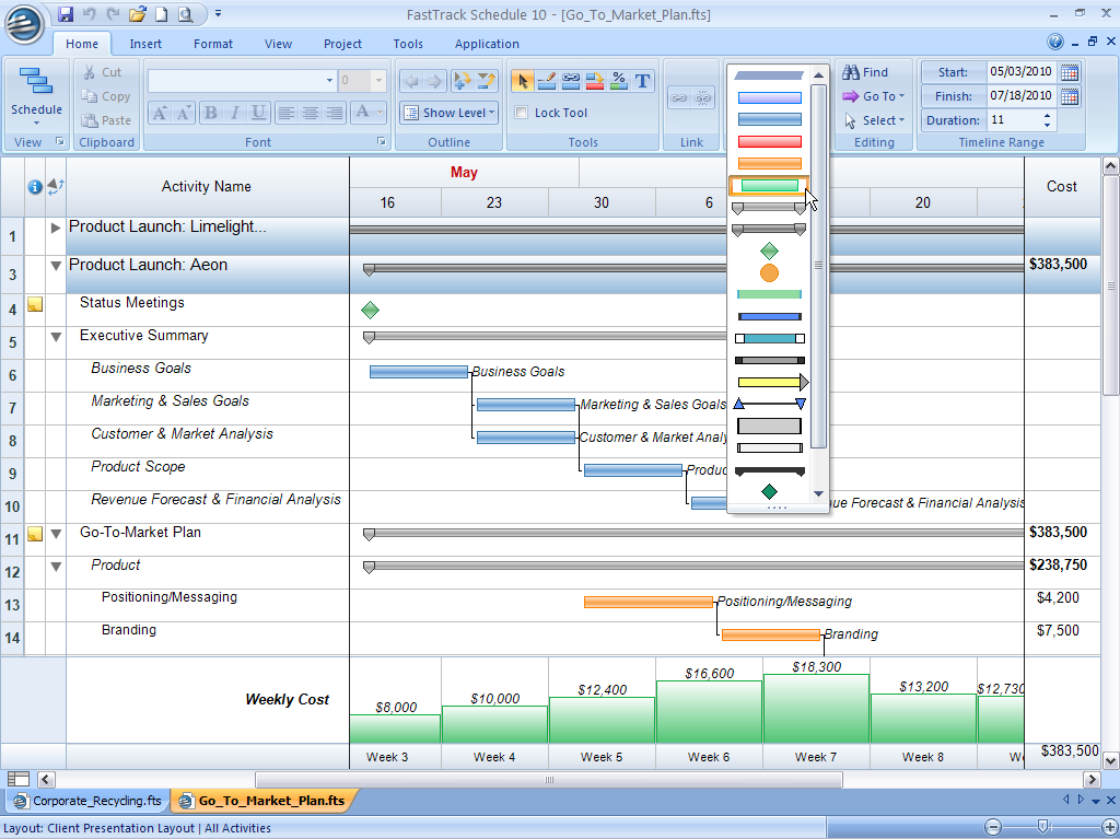 projects. New bar styles, milestones, and gradients transform an ordinary schedule