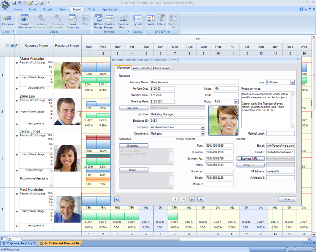 FastTrack Schedule’s redesigned Resource Information Form organizes work schedules,