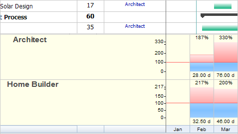 Usage Graphs at the base of the Gantt chart to provide a detailed snapshot of a